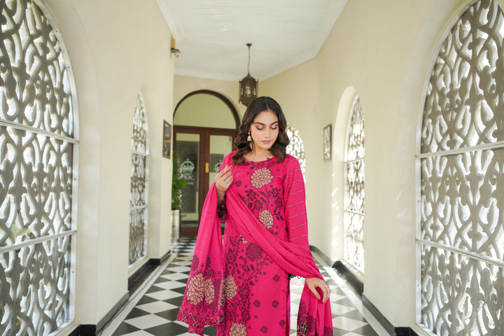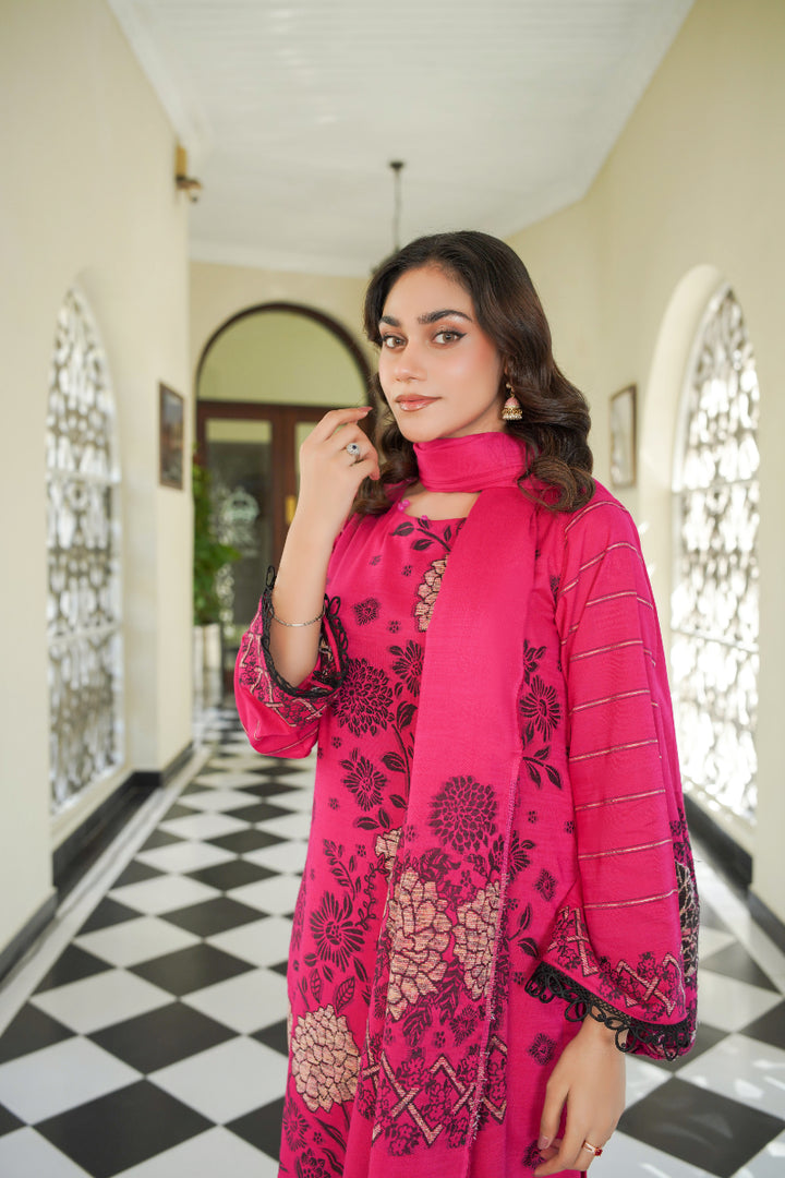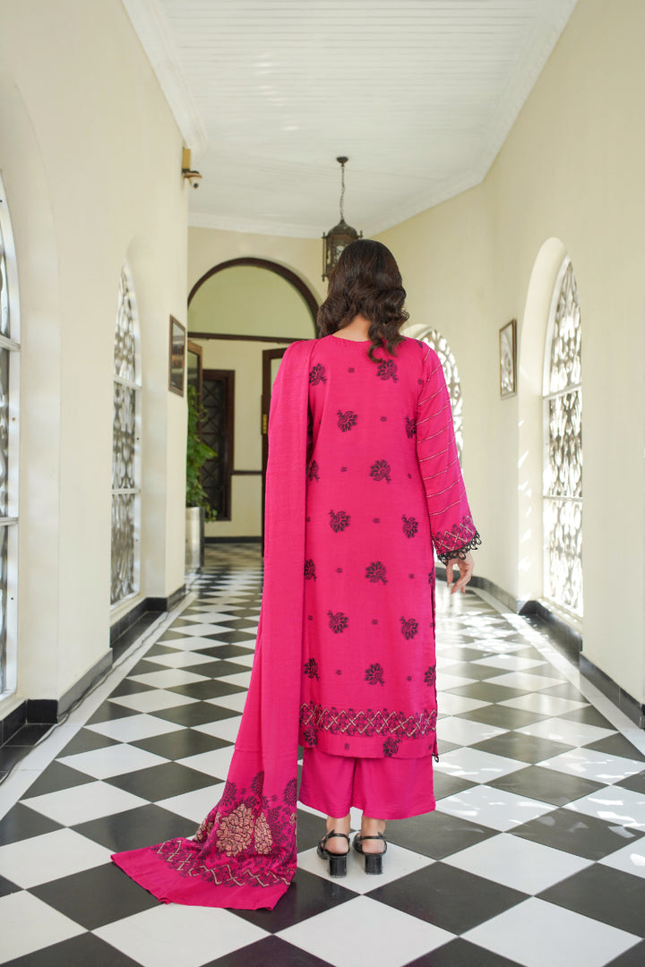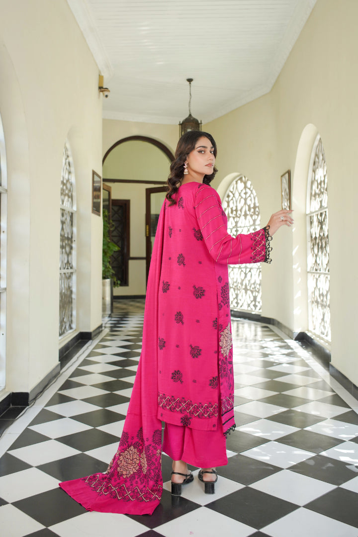 Radiate charm this season with Gulabi Nazakat πΈ β a stunning 3-piece unstitched khaddar outfit in a vibrant pink hue, adorned with elegant floral embroidery πΊ.