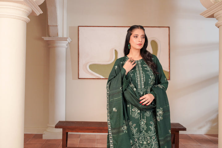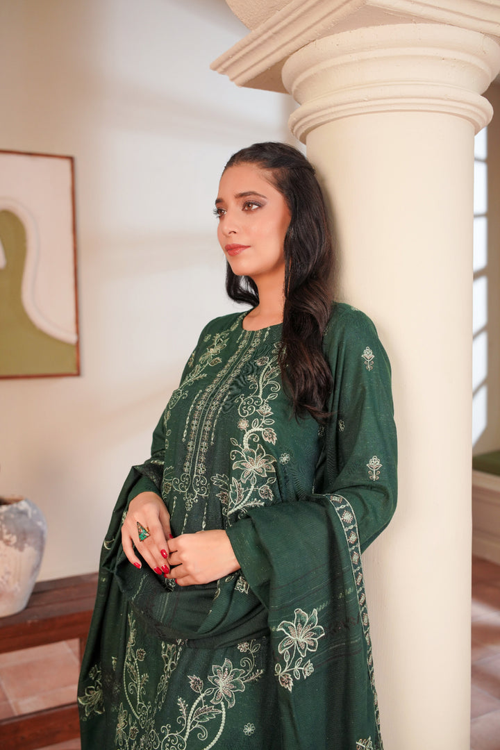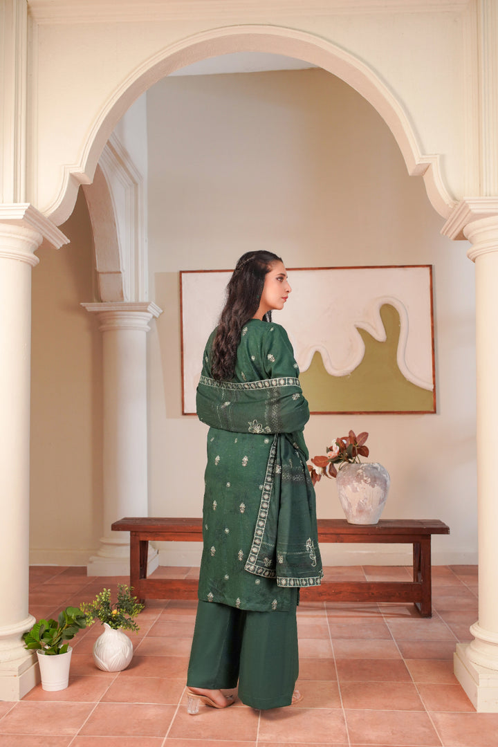A reflection of nature’s serenity and grace 🌿 — Sabz Sitara shines in a deep emerald green tone ✨, beautifully adorned with intricate embroidery 🪡. The detailed shirt paired with a 4-sided lace-bordered dupatta 🧵 and plain trouser creates an effortlessly graceful look 🌸. Perfect for festive gatherings and elegant evenings 🌙, this ensemble radiates sophistication with a touch of tradition 👑.