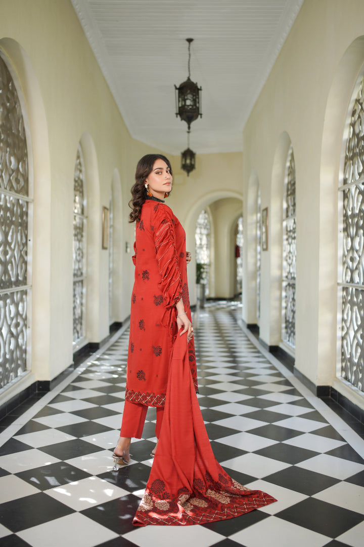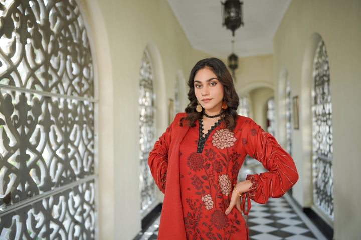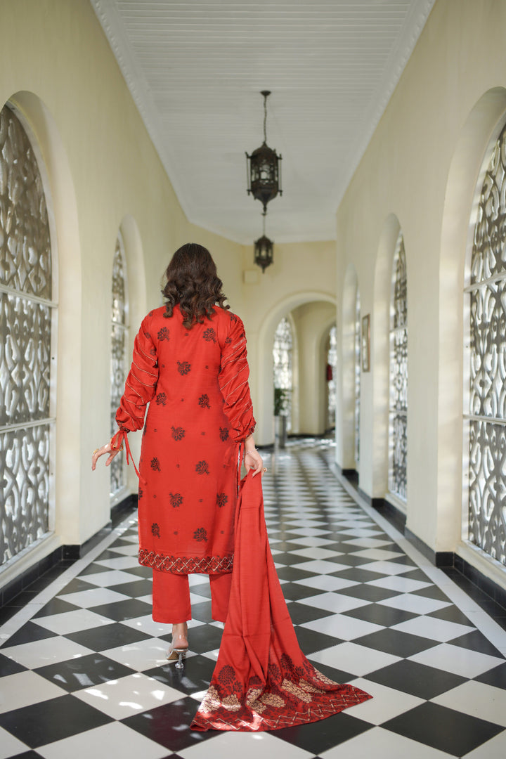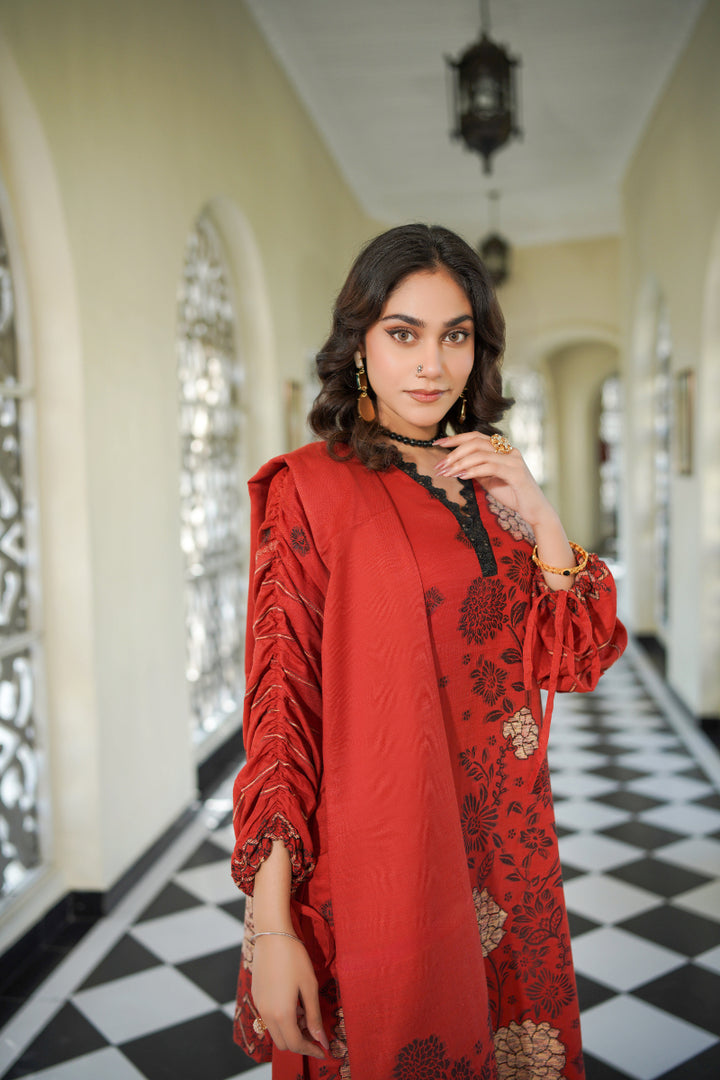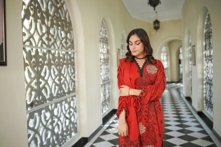 Bold. Beautiful. Timeless. ✨ Surkh Bahar is a stunning 3-piece unstitched khaddar outfit in a rich crimson hue 🌹, adorned with intricate floral embroidery that exudes warmth and sophistication.