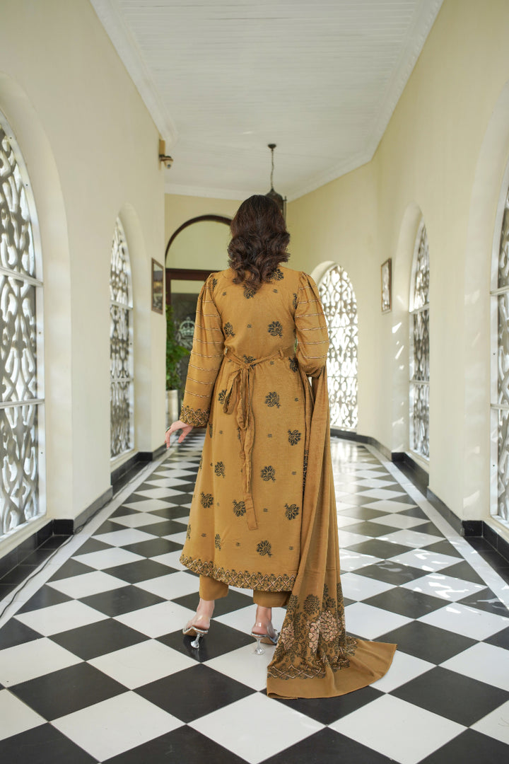 Grace and warmth come together in Zamurd-e-Khaas πΏ β a mesmerizing 3-piece unstitched khaddar outfit in a rich mustard tone, beautifully adorned with intricate floral embroidery πΌ.