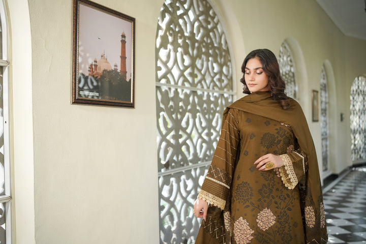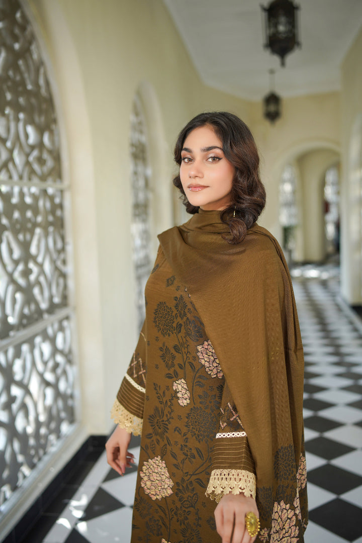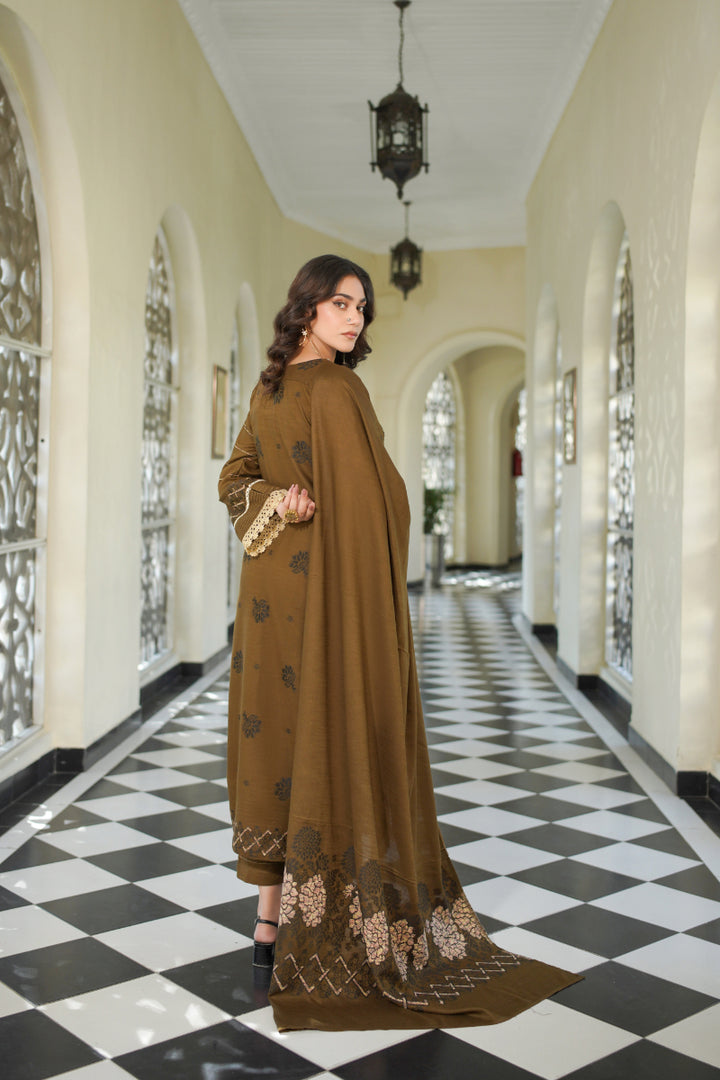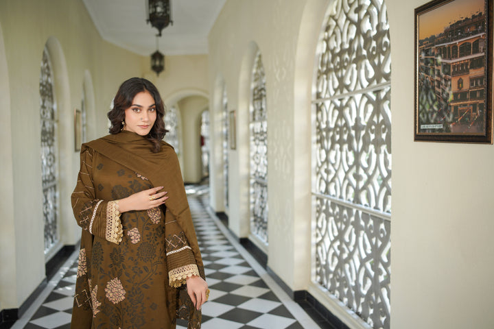 Elegance in every thread β¨ Zarfi Gul is a luxurious 3-piece unstitched khaddar outfit in a deep olive-brown tone πΏ, featuring exquisite floral embroidery that adds a touch of sophistication and warmth.